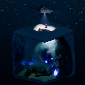 Beneath the explorers' feet lies a colossal creature from ancient times. Was it tragically frozen in its sleep or has it endured the centuries? It remains restrained only by the cold. Perhaps the ice is a seal that must never be broken.